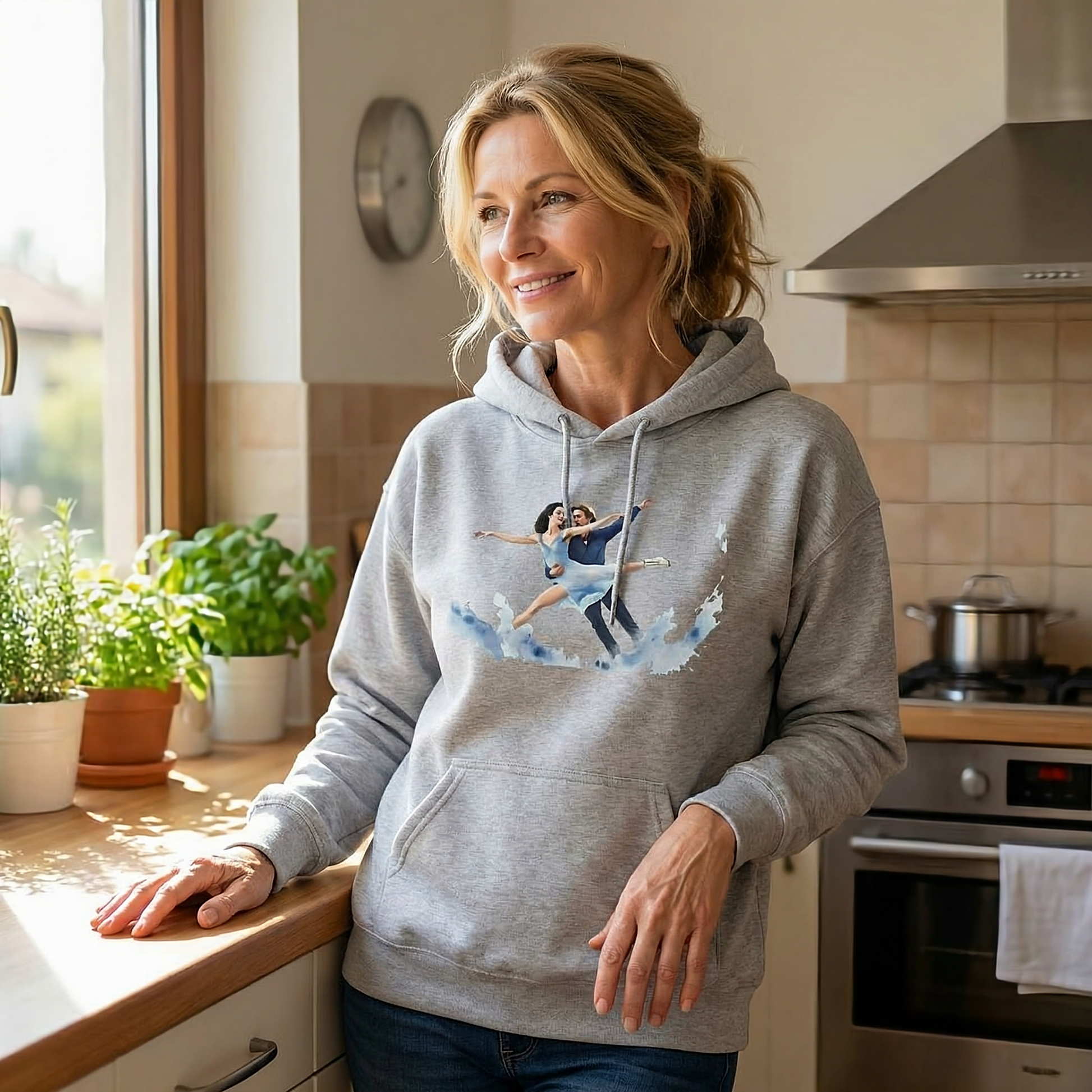 Wrap yourself in the breathtaking beauty of figure skating with our exclusive watercolor art hoodie. Featuring a beautifully captured "graceful lift" pose, the soft sky-blue and deep navy tones delicately melt into the premium fabric, creating a wearable masterpiece that celebrates the art of movement.